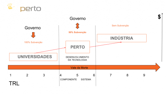 A PERTO faz a ponte entre a pesquisa acadêmica e o setor industrial, superando o famoso “Vale da Morte”, onde os avanços da Universidade morrem sem ter a oportunidade de se transformar em produtos inovadores, em benefício da sociedade.